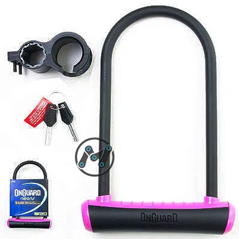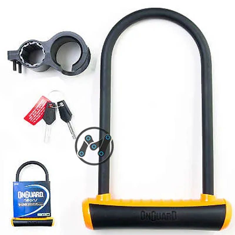 INFORMAÇÕES DO PRODUTO O mecanismo de travamento com parafuso duplo proporciona maior resistência e alta resistência à tração, travando firmemente em 2 lados da barra. O novo cilindro de segurança z-key, de fácil utilização, resistente a alicates de construção civil de grande capacidade, furadeiras, cinzéis e objetos que possam comprometer a integridade do miolo ou do cadeado em si, com tecnologia U-LOCK, oferece um ótimo dissuasor contra ataques físicos. Inclui 2 chaves de corte a laser. Base de aço maciço de 11mm [0,43] ultra endurecido proporciona a máxima resistência ao corte. FICHA TÉCNICA - Marca: Onguard - Material: Aço maciço - Modelo: U-Lock[ - Espessura: 11mm - Base: 4.53 x 9.06 - Arco: 115mm x 230mm - Peso: 995g ENVIO Após a finalização da compra o envio é realizado no prazo de 24 horas o prazo de entrega é estipulado de acordo com a distante entre o rementende e o destinatario. GARANTIA Todos os nossos produtos possuem garantia contra defeitos de fabricação com prazo de 90 dias a contar da data da compra. QUEM SOMOS A Marczak está a 20 anos no mercado de bikes peças e acessórios oferecendo os melhores produtos com preços com cabem no seu bolso. Atendemos também a modalidade de atacado para lojistas e oficinas.